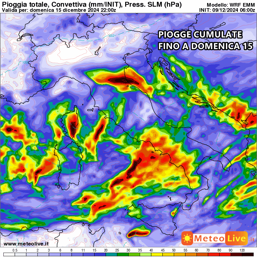 Martedì 10 Dicembre: risale ancora maltempo su tutto il centro-sud, con rischio forti acquazzoni e locali nubifragi. Ancora piogge in Romagna e Marche. Migliora gradualmente altrove.