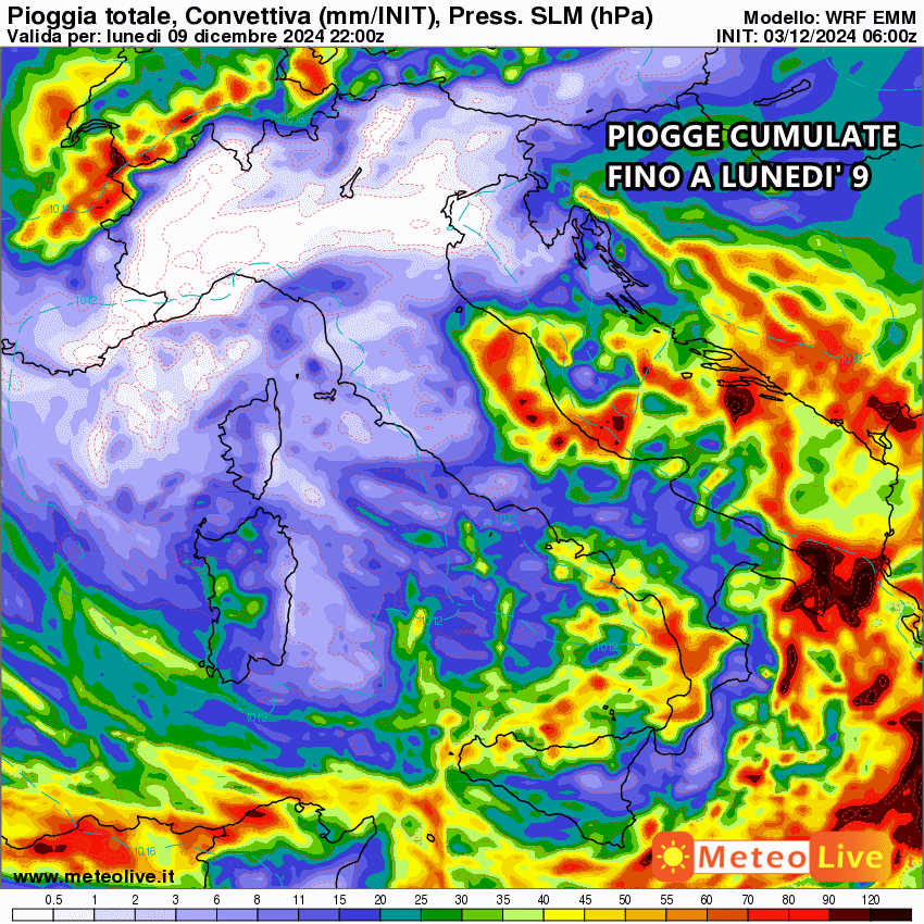 Tutta la pioggia prevista fino al 9 Dicembre: