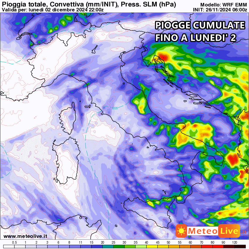 Tutta la pioggia prevista fino al 2 Dicembre: