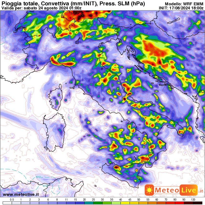 Sabato 24 Agosto: deboli flussi atlantici verso il nord, rischio di isolati temporali anche forti. Più stabile altrove e caldo in aumento.