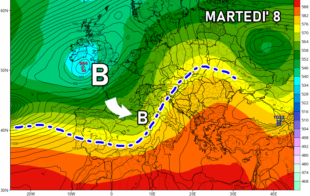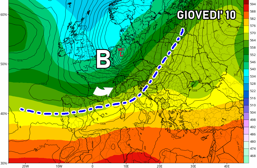 Dopo una pausa davvero irrisoria il tempo peggiorerà nuovamente al nord: un’altra depressione proveniente da ovest porterà piogge e temporali da mercoledì sera e per gran parte di giovedì al nord e medio-alto Tirreno. Fenomeni molto più blandi e veloci altrove, quasi del tutto inesistenti all’estremo sud.