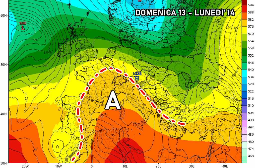 Domenica 13 Ottobre: migliora vistosamente ovunque, torna l’anticiclone nel Mediterraneo.