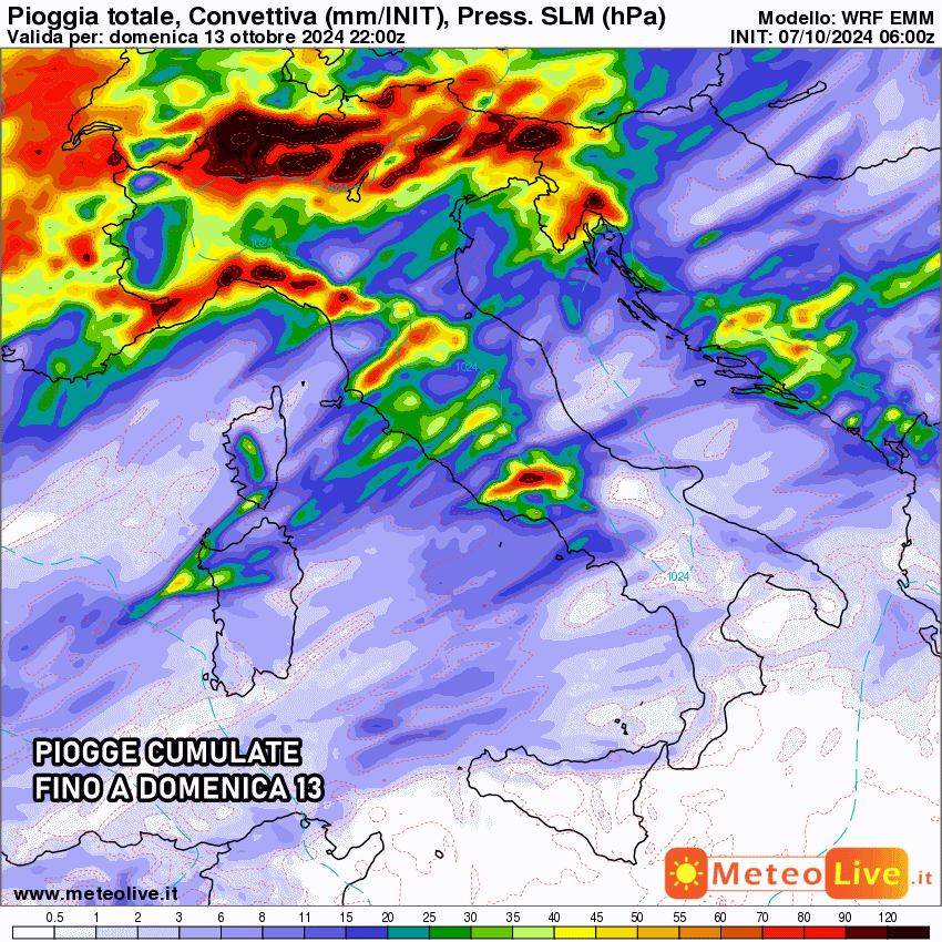Tutte le piogge cumulate fino al 13 Ottobre: