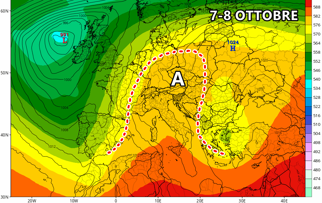 Giovedì 3 Ottobre: ciclone insidioso nel Mediterraneo. Rischio al centro Italia, piogge sparse al nord, rischio temporali in risalita verso sud. Temperature stazionarie.