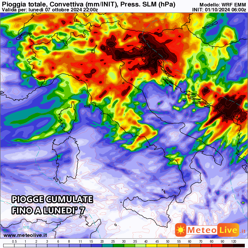 Tutte le piogge cumulate fino al 7 Ottobre:
