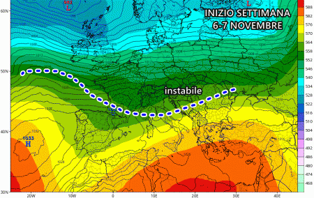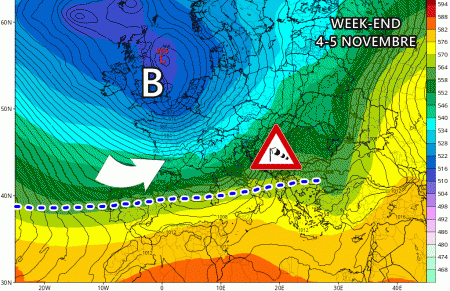 Sabato 4 novembre: altra perturbazione in arrivo dall’Atlantico, venti intensi di libeccio su gran parte d’Italia e piogge sul lato tirrenico e nordest.