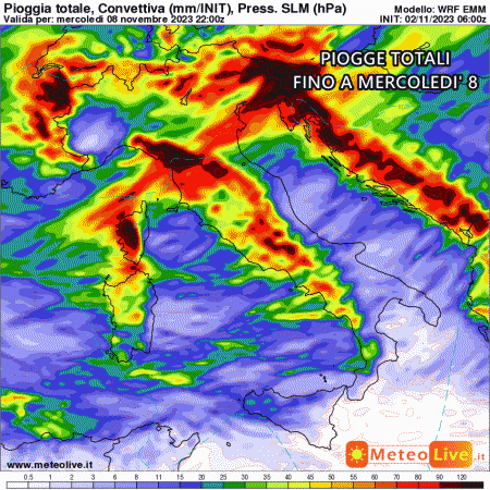 Domenica 5 novembre: insistono le piogge al nordest, centro e sud Italia. Raffiche di libeccio tempestose al centro e al sud.