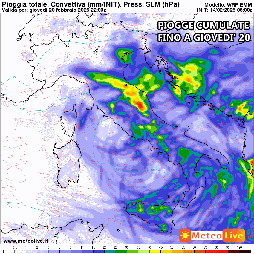 Tutta la pioggia prevista fino al 20 Febbraio: