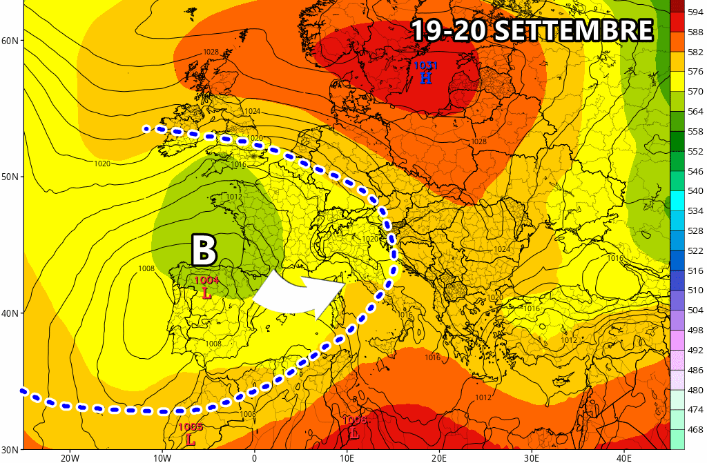 Venerdì 20 Settembre: possibile depressione insidiosa nei pressi della Sardegna, nubi in aumento su tutto il lato tirrenico e nord-ovest con rischio maltempo.
