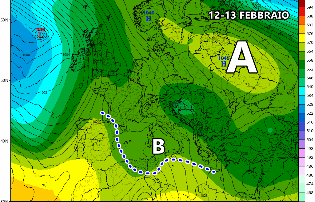 Mercoledì 12 Febbraio: nuova depressione nel Tirreno (da confermare). Maltempo al centro-sud e isole maggiori.