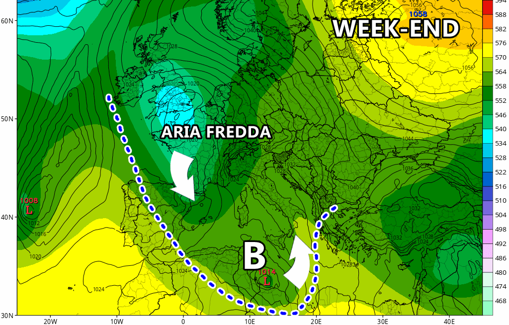 L’alta pressione sta interessando gran parte d’Italia da un paio di giorni, ma, come anticipato nei precedenti editoriali, ci stiamo avvicinando a una nuova e severa fase di maltempo. A partire da venerdì, prenderà forma una nuova depressione incisiva nel Mar Mediterraneo, alimentata da aria fredda proveniente dall’Est Europa. I flussi freddi aggireranno l’arco alpino, per poi fiondarsi attraverso la Francia sul Mediterraneo occidentale, dove si svilupperà una depressione destinata a farci compagnia per qualche giorno.