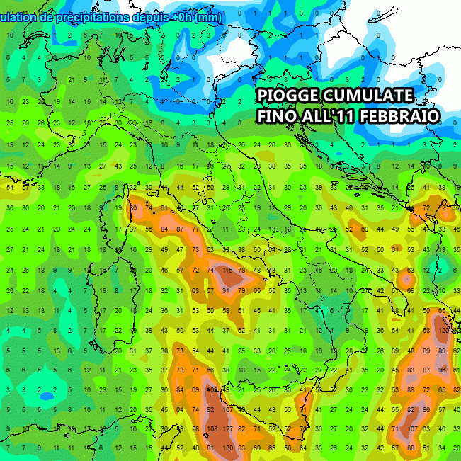 Tutta la pioggia prevista fino al 11 Febbraio: