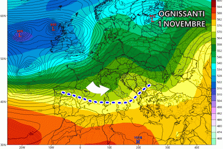 Il primo disturbo è atteso all’inizio della settimana, dunque proprio sul finale di ottobre, e si tratterà di una veloce perturbazione, comunque ricca di precipitazioni per il nord e il medio-alto Tirreno. Già nel corso di martedì 31 ottobre avremo un graduale miglioramento, con le ultime piogge che si esauriranno al centro e al sud. Ma già con l’arrivo di novembre, precisamente nella giornata di Ognissanti, dovremo riaprire gli ombrelli in diverse località del versante tirrenico, tra il centro e il sud Italia, considerando che transiterà un veloce cavo d’onda dall’Atlantico.