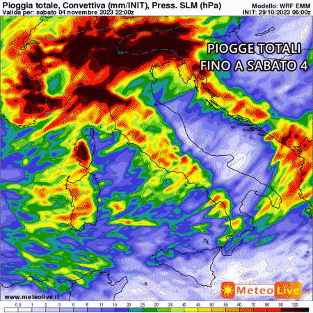 Sabato 4 novembre: maltempo su gran parte del nord e del centro, improvvis aimpennata termica al sud per il ritorno dello scirocco.
