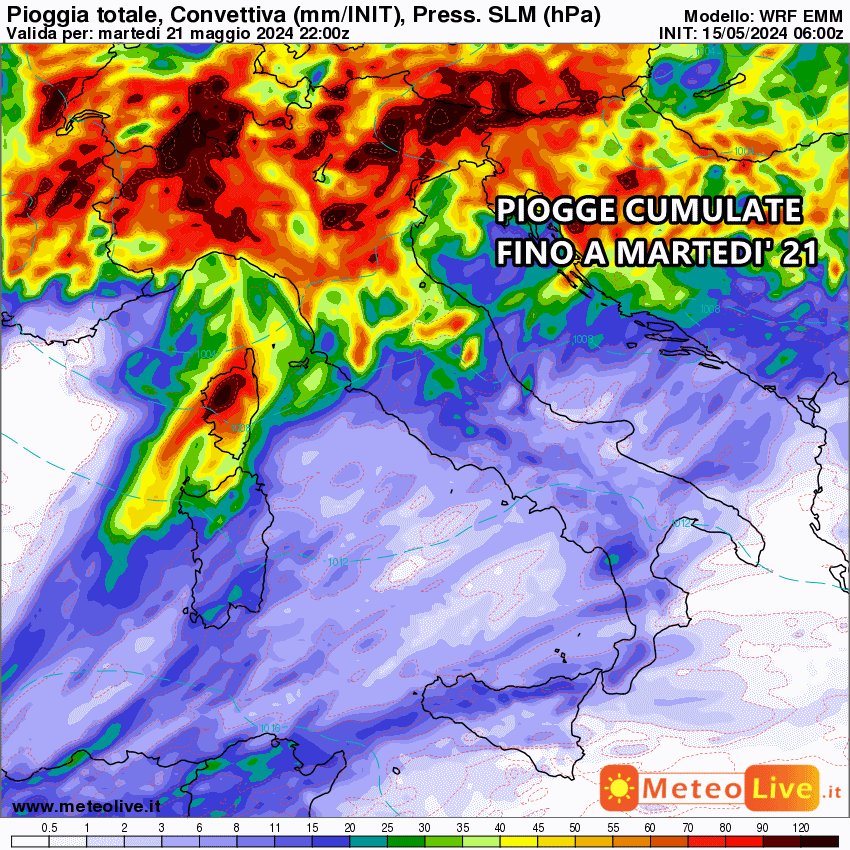 Martedì 21 Maggio: centro e nord assediati dal maltempo. Rischio nubifragi intensi sul Nord-ovest. Più asciutto e tanto scirocco al sud.