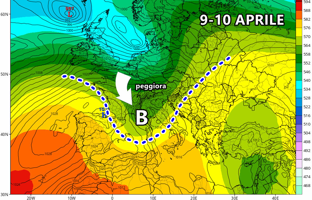 Martedì 9 Aprile: possibile peggioramento marcato su gran parte del nord con rischio temporali intensi. Caldo che insiste al sud.