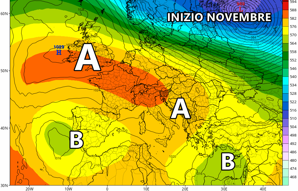 Solo sulla penisola iberica insisterà un ciclone letteralmente isolato e circondato dalle alte pressione, ma senza possibilità di raggiungere l’Italia. Tutte le perturbazioni nord-atlantiche saranno costrette ad aggirare l’anticiclone, fiondandosi su Scandinavia e Russia europea, dove effettivamente vivremo un assaggio d’Inverno.