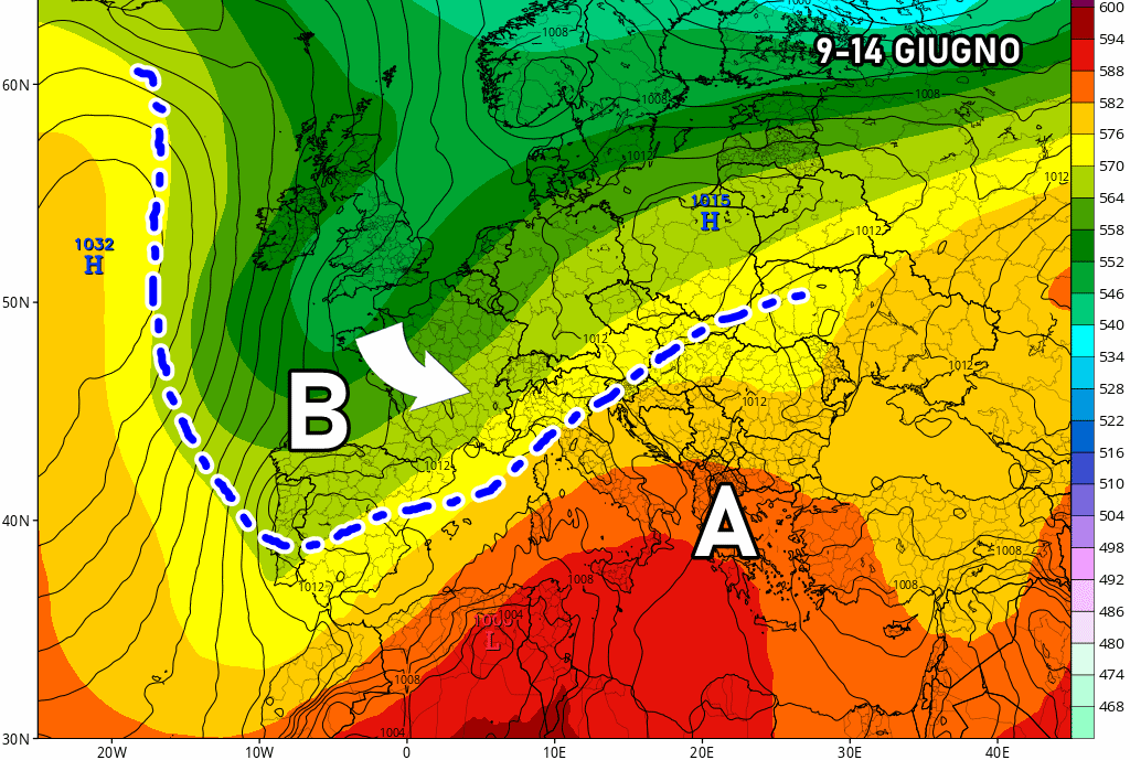 Domenica 9 Giugno: anticiclone africano a tutta forza al sud con caldo anomalo, rischio forte peggioramento al nord e parte del centro con violenti temporali!