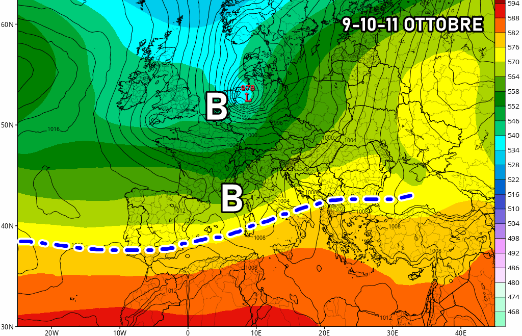 L’altra perturbazione sembra ormai confermata tra 9 e 10 Ottobre, dopo un breve miglioramento nel corso di mercoledì. In verità già dalla sera di mercoledì le piogge torneranno sul Nordovest, dopodiché il maltempo entrerà nel vivo giovedì 10 con piogge e temporali su gran parte del nord e del centro Italia. Ultimi fenomeni venerdì 11, prima di un veloce miglioramento.