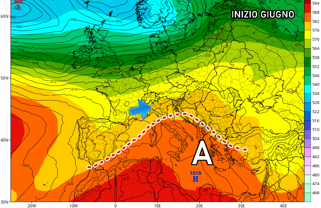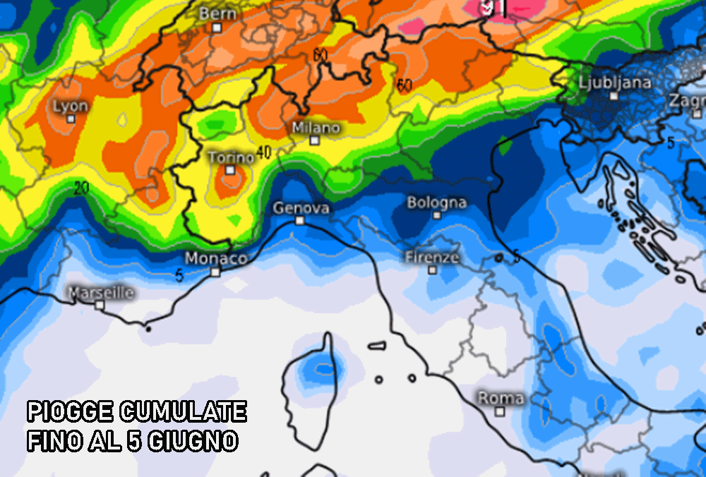 Altra instabilità potrebbe arrivare attorno al 4-5 giugno, ancora una volta sulle regioni del Nord. Poco o nulla, invece, sul resto d’Italia, dove addirittura avremo un forte anticiclone subtropicale che porterà a un’impennata delle temperature massime.