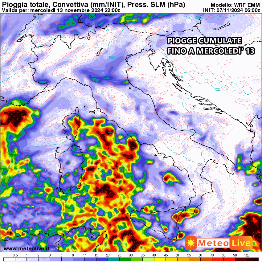 Tutta la pioggia prevista fino al 13 Novembre: