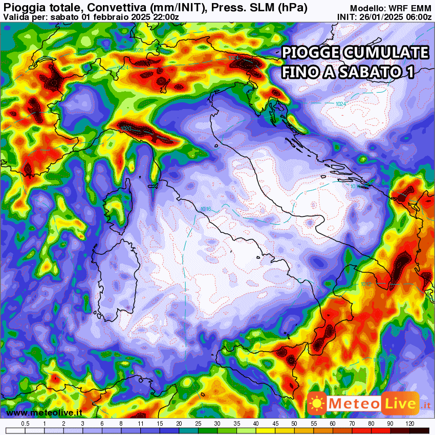 Sabato 1 Febbraio: forte maltempo su isole maggiori e Calabria, più asciutto altrove.