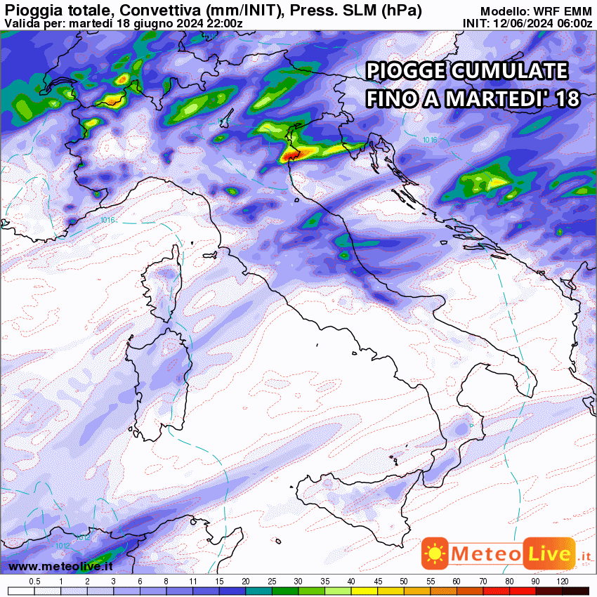 Ecco le piogge cumulate previste fino al 18 Giugno: