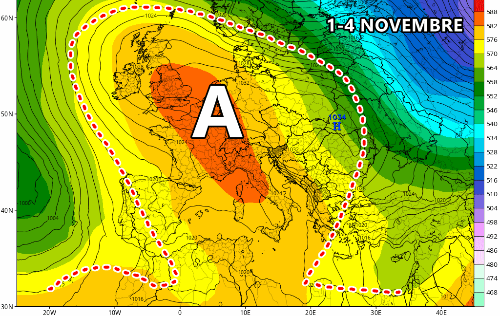 Il predominio dell’anticiclone sarà evidente anche all’avvio di Novembre, quando ci sarà un ulteriore incremento delle temperature massime su tutta Italia ed anche sull’Europa centrale. Di contro inizieranno a scendere le temperature minime, giorno dopo giorno, grazie alle inversioni termiche e l’irraggiamento notturno che diventeranno via via sempre più efficaci.