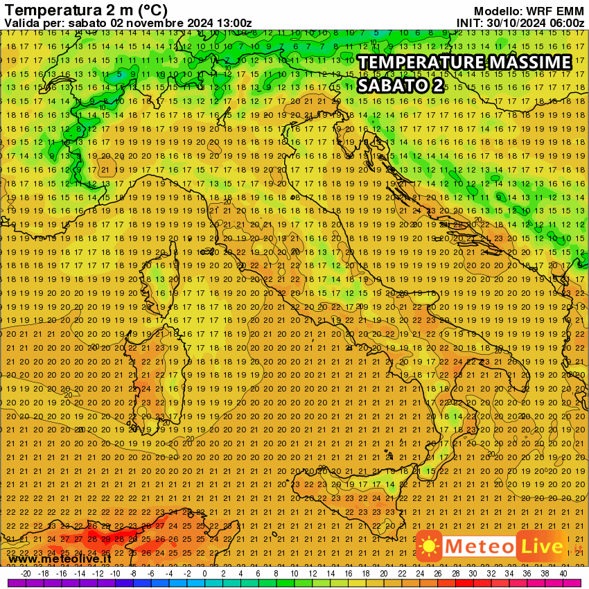 Sabato 2 Novembre: generalmente stabile ovunque, temperature stazionarie. Eloquenti le temperature massime previste: