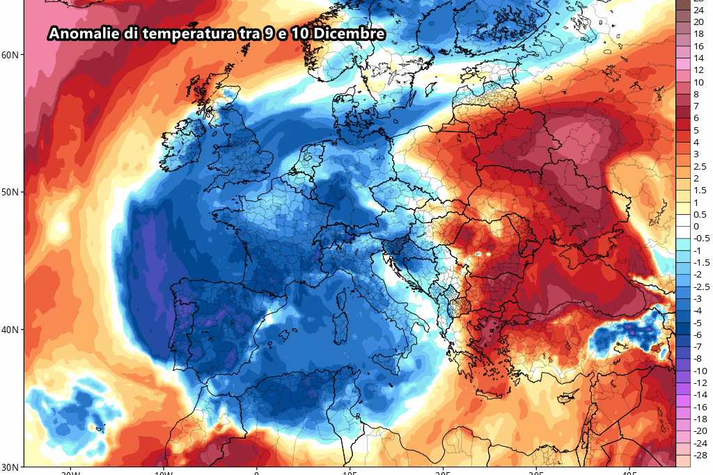 Questa massa fredda darà vita ad un ciclone stazionario, pronto a coinvolgere l’Italia per diversi giorni consecutivi tra 8 e 11 Dicembre. Gli effetti saranno più che evidenti da nord a sud: oltre a piogge, venti forti e freddo avremo anche la neve, localmente fino a bassissima quota!