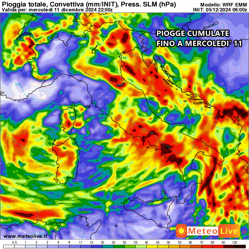 Tutta la pioggia prevista fino all’11 Dicembre: