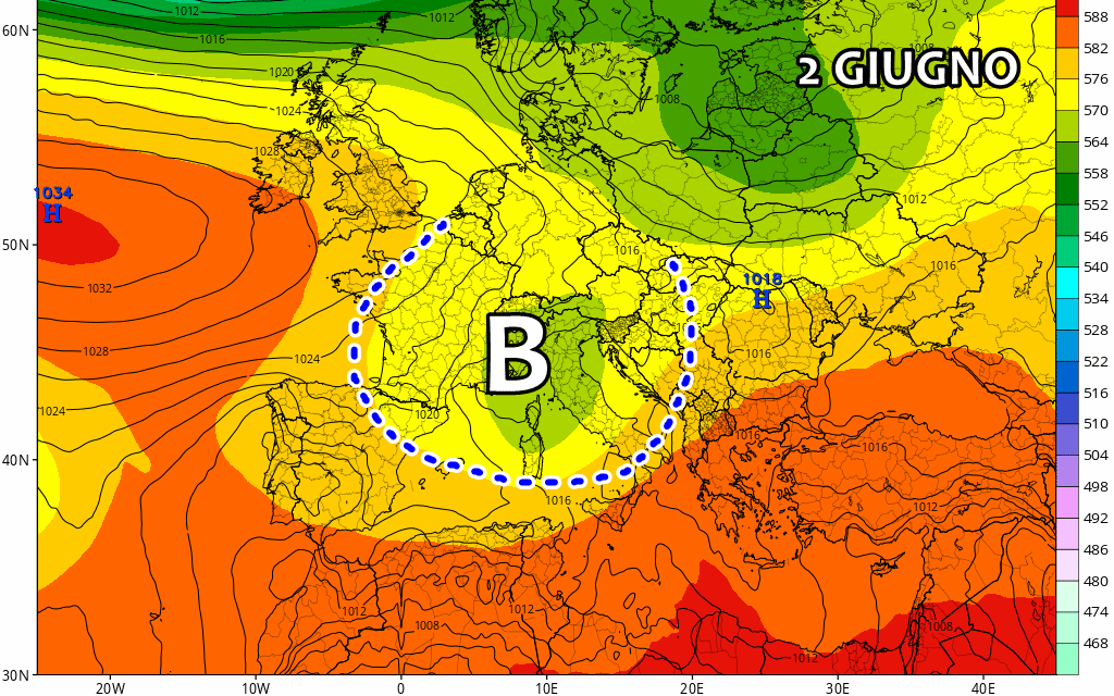Per un vero miglioramento del tempo bisognerà attendere almeno il 6 o il 7 giugno, quando l’alta pressione pare possa nuovamente avvolgere la nostra penisola spazzando via tutte queste correnti fresche e instabili.