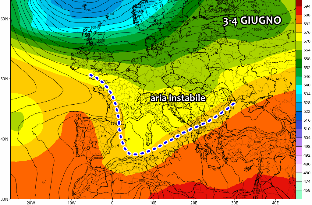 Una vasta area di bassa pressione continua ad aleggiare tra l’Europa centrale e il Centro Nord Italia, dove determina tanta instabilità e frequenti occasioni di maltempo. Questa area di bassa pressione ci farà compagnia ancora per diversi giorni, almeno fino al 4 giugno, su gran parte della nostra penisola, causando tanti nuovi temporali che inevitabilmente potranno arrecare dei disagi e delle criticità, soprattutto nei settori già fortemente martoriati dalle piogge e dai temporali nelle ultime settimane.
