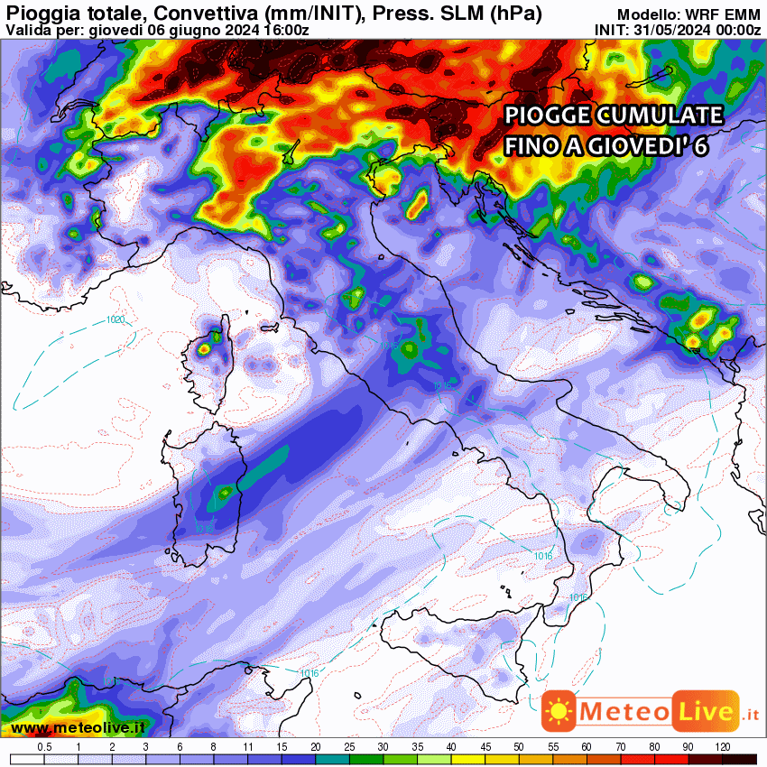 Sabato 1 Giugno: momentanea pausa al nord, qualche temporale su Puglia, Molise, Campania, Basilicata, basso Lazio e Appennino centro-settentrionale.