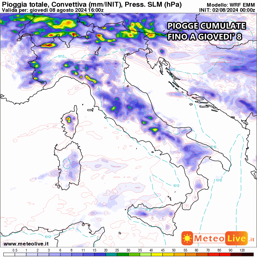 Ecco le piogge cumulate fino all’8 Agosto: