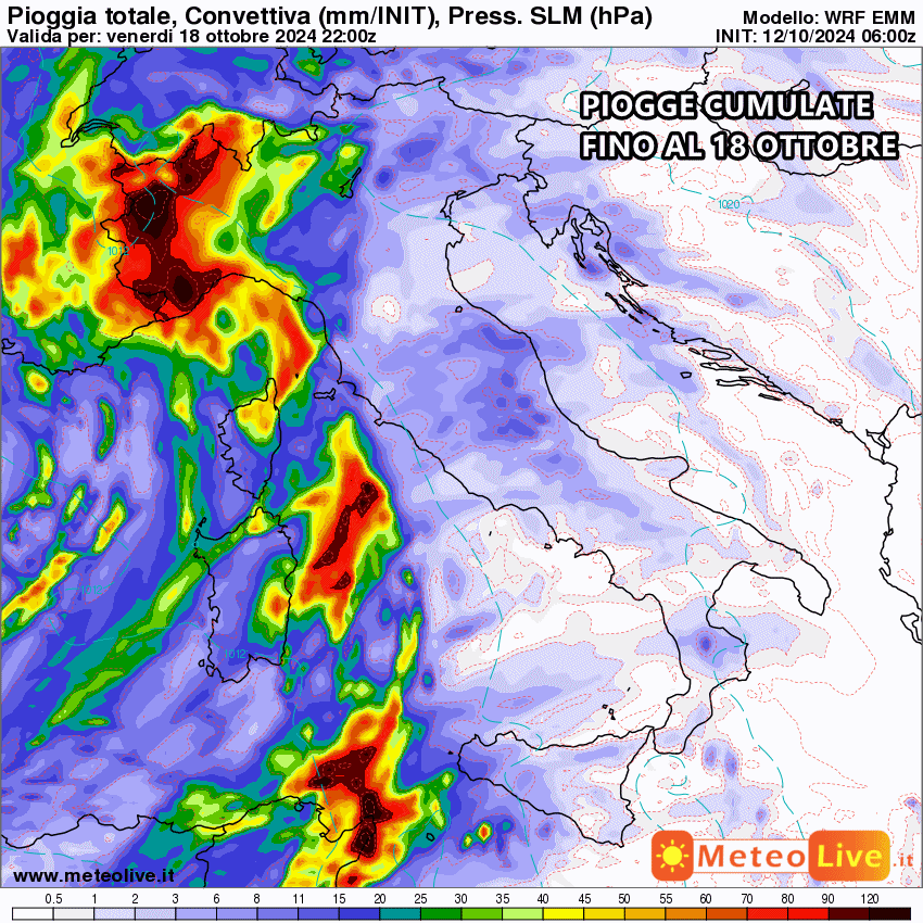 Tutte le piogge cumulate fino al 18 Ottobre: