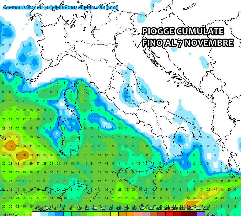 Tutta la pioggia prevista fino al 7 Novembre: