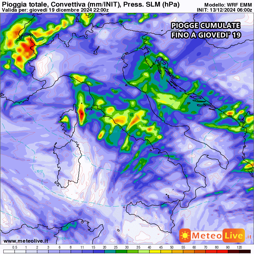 Tutta la pioggia prevista fino al 19 Dicembre: