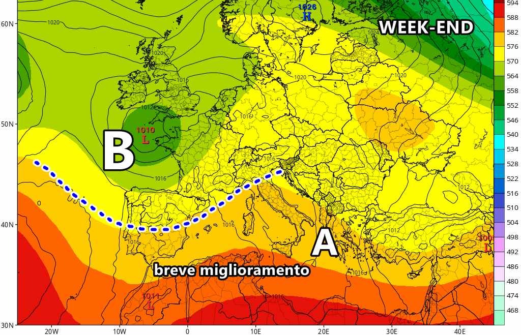 Un breve miglioramento sembra profilarsi durante il week-end, col ritorno del Sole su tante regioni. Questa parvenza d’alta pressione porterà anche un lieve aumento termico, ma senza eccessi.