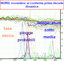 Intanto vi abbiamo postato oggi le 3 carte spaghetti settoriali: tutte e tre mostrano la fase asciutta e in parte soleggiata sulle zone peninsulari, nebbie permettendo, sino al 3 novembre, poi una fase mediamente piovosa con valori termici in media, poi un importante calo termico, ancora con qualche precipitazione. La nostra idea è che la previsione "quadri".