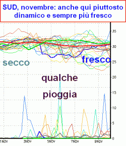 Probabili 1-2 passaggi piovosi entro il 10 novembre, grazie alla poderosa spinta dell'Atlantico. Comunque Ponte dei Morti salvo quasi ovunque, ad eccezione forse di Sicilia, Sardegna e Calabria. In seguito dovrebbe inserirsi una saccatura da ovest.