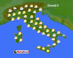 48 ore all’insegna delle correnti da nord-ovest, con generale variabilità, alcuni rovesci tra Sardegna, basso Tirreno e regioni del medio basso Adriatico, poi venerdì 7 nuova depressione in arrivo con rotazione a sud ovest delle correnti e qualche nevicata in pianura su parte del settentrione, specie Lombardia e Triveneto e temporaneo rialzo delle temperature al centro-sud. Formazione di un minimo depressionario ancora un po’ "ballerino" al suolo tra nord e centro Italia.
