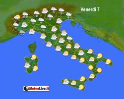 venerdì 7 dicembre: rapida rotazione delle correnti a sud ovest con nubi in aumento al nord, sulla Toscana, l’Umbria e l’alto Lazio; dal pomeriggio deboli nevicate sulla pianura lombarda, a bassa quota sull’Appennino ligure, poi sul Triveneto e l’Emilia-Romagna, ancora da verificare l’eventuale assenza di fenomeni sul Piemonte. Possibili nevicate anche sull’alta Toscana oltre i 300-500m, piovaschi sul resto delle regioni centrali tirreniche. Più sole al sud. Temperature in calo anche forte al nord, in temporaneo aumento altrove.