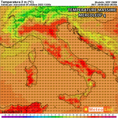 Di seguito le temperature massime, in linea indicativa, previste per mercoledì 4 ottobre: