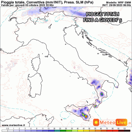 Sabato 30 Settembre: stabile su tutta Italia, anticiclone e caldo settembrino. Isolati temporali pomeridiani nelle zone interne di Calabria e Sicilia.