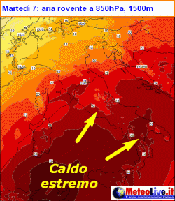 Detto ciò, guardiamo avanti ed ecco subito una buona notizia: a partire da mercoledì 8, ma ancor più da giovedì 9, la massa d’aria rovente, venuta su a forza dalle distese desertiche del Sahara, sarà costretta ad arretrare, anche con una certa prepotenza, oltre le sponde meridionali del Mediterraneo ad opera di un flusso più fresco di derivazione nord-atlantica. Certo il ciclope nord-africano non si darà per vinto e, non contento di avere il dominio solo su distese desertiche disabitate, risalirà verso la Penisola Iberica, dove darà luogo ad una fiammata analoga a quella italiana, comunque a debita distanza dal nostro Paese.