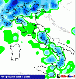 Per il resto poca acqua (vedi mappa qui a fianco), ad eccezione di qualche temporale sulle Alpi orientali tra martedì 7 e venerdì 10 e su centro-quelle occidentali nelle serate a partire da lunedì 13. Su queste zone però gli eventuali problemi saranno legati alla violenza dei fenomeni, che si presenteranno isolati (quantunque difficilmente collocabili in previsione) ma in compenso costantemente sovraccarichi.