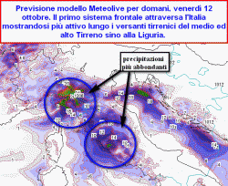 Venerdì 12 ottobre: giornata instabile su diverse regioni italiane. Il corpo nuvoloso associato al fronte freddo transita sul nostro Paese portando un carico di precipitazioni sparse che tra la prossima notte e la mattinata di domani interesserà un pò tutte le zone tirreniche.