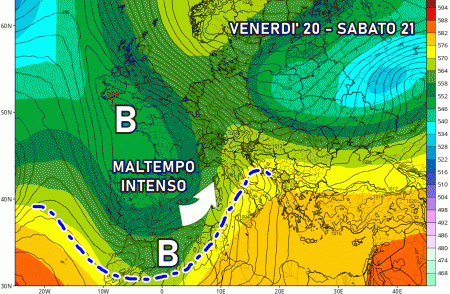 Venerdì 20 ottobre: affondo atlantico verso l’Africa settentrionale. Risalita di aria umida e ricca di pioggia verso centro e nord Italia. Impennata termica su tutto il sud per l’arrivo dei venti di scirocco.