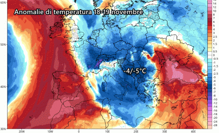 Il prossimo weekend, quindi, potrebbe rivelarsi notevolmente più freddo e instabile, contrapponendosi esattamente alle condizioni meteorologiche molto più stabili e piacevoli che caratterizzeranno la prima parte della settimana. Eloquenti le anomalie di temperatura previste per il prossimo fine settimana: